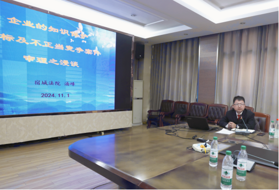 会议结束后,经开区检察院邀请宿城区人民法院民二庭员额法官汤峰围绕“知识产权及商标案件审理”作专题授课。汤峰法官结合真实案例向企业讲解商标侵权常见表现形式、面临的法律后果,并为企业预防商标侵权提供了专业意见,有效增强了民营酒企的知识产权意识。